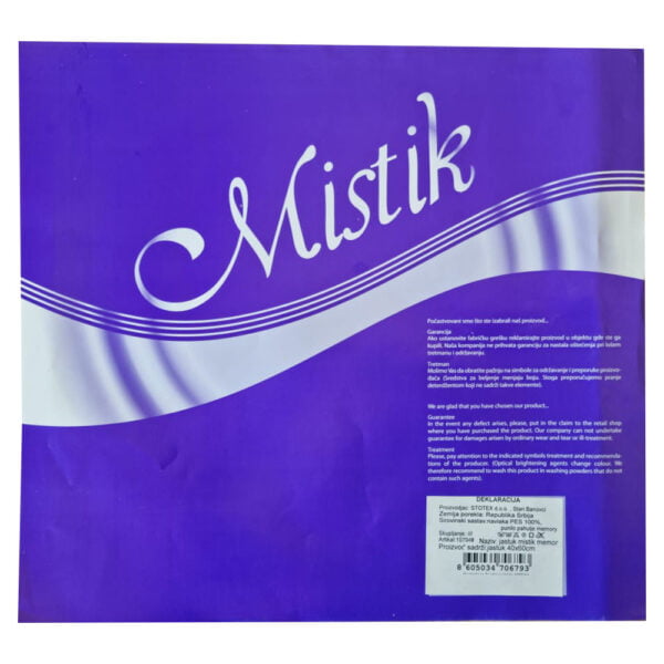 Ne postoji puno tekstilnih proizvoda sa kojima naše telo dolazi u dodir kao sa jastukom. Kvalitet jastuka utiče na spavanje i naše dnevno dobro osećanje. Materijali dolaze direktno u dodir sa kožom i zato je veoma važno čime su punjeni. Jastuci Mistik memory punjeni su memory pahuljicama.